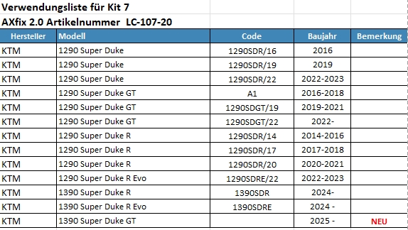 zur AXfix Verwendungsliste alle Motorradmodelle